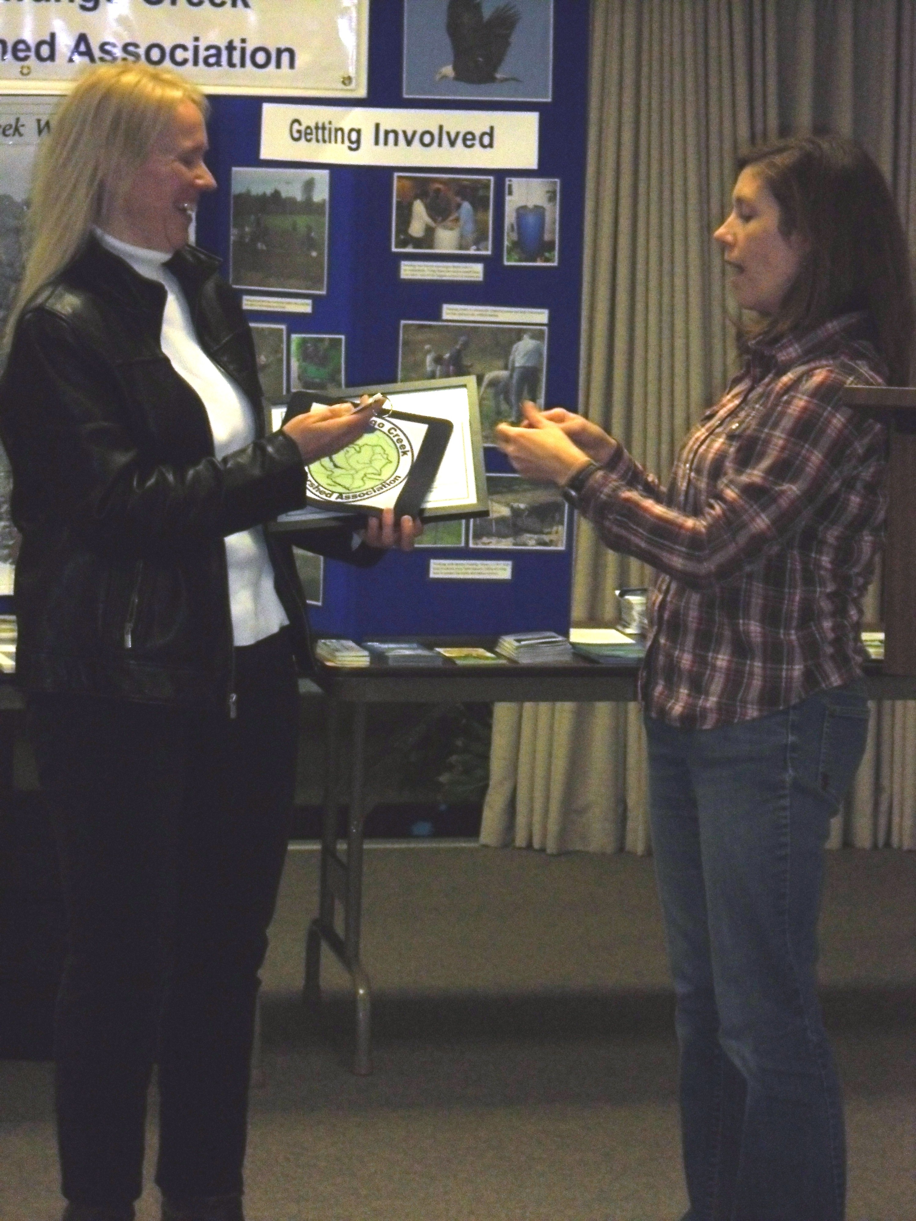 Conewango Creek Watershed Association honored Sue Nielson of Warren, PA as the Conservation Volunteer of the Year at their Annual Meeting, Tuesday, Nov. 5, 2013 held at the Jamestown Audubon Society Center near Jamestown NY.